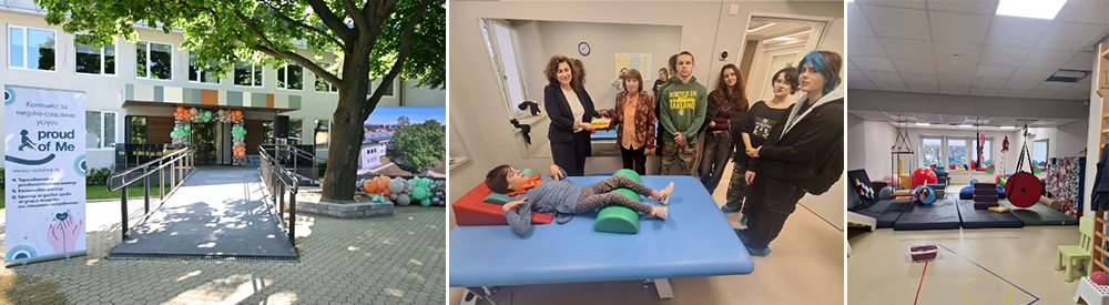 Център Proud of Me предлага множество социални услуги, разработени в отговор на нуждите на деца с проблеми в развитието. Комплексът е част от дейността на едноименна фондация, основана от родители на деца с увреждания, в обществена полза. Екипът на новия комплекс включва висококвалифицирани специалисти – кинезитерапевти, ерготерапевти, доктор специалист по физиотерапия и рехабилитация, логопеди, психолози, специални педагози и социални работници. Те работят в тясно сътрудничество с децата и техните семейства за постигане на оптимални резултати в развитието и адаптацията им. Сред тях е Мария Михайлова, която отглежа сама трите си дъщери. Тя споделя, че центърът е финансиран изцяло от родители и фондации, които участват с дарения или с трудова дейност. Всяка година в ПГИИ се провеждат благотворителни базари за Коледа и Баба Марта. Средствата се даряват на различни социални организации или на ученици със здравословни проблеми. Изборът, събраните от учениците, преподавателите и служителите в гимназията средства да бъдат предоставени на “Proud of me” не е случаен. Контактът на ПГИИ с центъра е дълбоко емоционален. Тук се терапевтира Симона Михайлова - сестричка на ученичка в нашето училище. Тя ежедневно посещава центъра с цел подобряване на сензорните си усещания, на моториката, на емоционалната си интелигентност, на поведенческите и функционалните си умения. Съпричастието и отзивчивостта на учениците в гимназията е важна част от възпитанието и образованието им. Те не само организираха събирането на средствата и дариха сумата, но и лично посетиха центъра, за да се запознаят с радостите и с изпитанията на живота. За преживяванията си младежите споделят, че са щастливи, че децата в неравностойно положение имат място, където да се чувстват обгрижени и в безопасност.