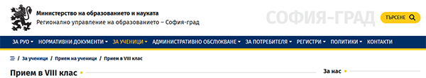 Посетете раздел "Прием в VIII клас" в сайта на РУО-София град >