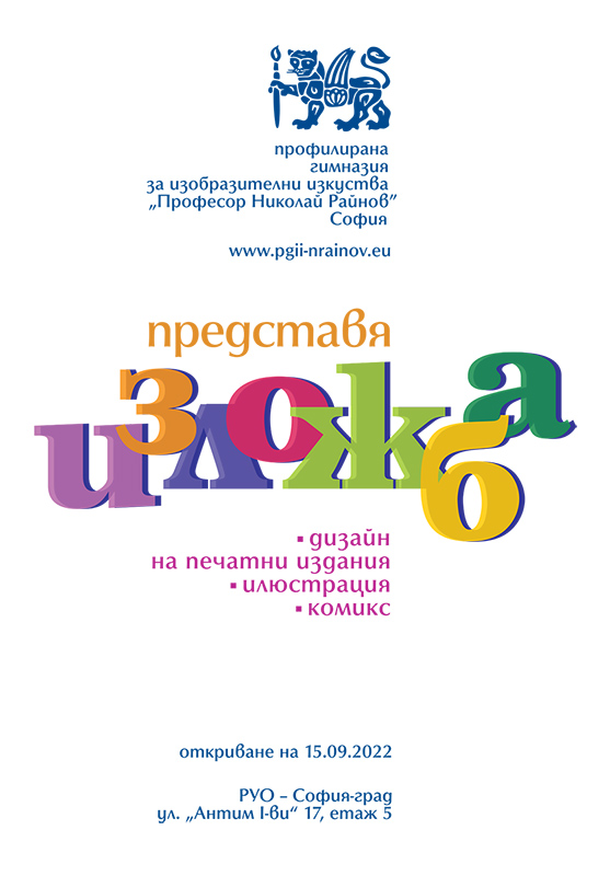 За пръв път част от експозицията е показана през април, 2022 г. в сградата на Столична библиотека, а от 15 .09. 2022 г. на обогатените и обновени творби ще могат да се насладят гостите и служителите на РУО – София град. В рамките на изложбата могат да се видят илюстрации, комикси, дигитални рисунки, дизайн на книги. Именно тези произведения отличават ПГИИ "Проф. Николай Райнов" от останалите гимназии. Младите художници с изключително внимание към дизайна и детайлите са представили своята интерпретация, чрез илюстрация и оформление, на текстове от Курд Ласвиц, " Апикис" (фантастика) и от Рей Бредбъри - "451° по Фаренхайт". Комиксите са авторско дело на учениците. Акцент на изложбата е обединяването на слово и визия; текст и форма; идея, цвят и образ, чиято симбиоза е така важна за образователния процес днес. Училището участва с престижните за гимназията и все по-търсени на образователния пазар професионални направления: Дизайн на печатни издания; Илюстрация; Комикс.